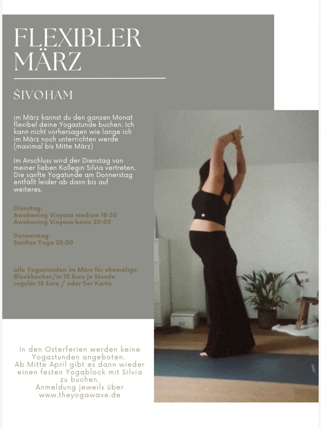 Je Monatsweise biete ich einen ganzen Yogablock zur Buchung an (die Anzahl der Termine variiert je nach Monat und Jahreszeit), meist sind es zwischen 4 und 5 Terminen. Je nach Anzahl der Terminen gestaltet sich dann der Preis (pro Termin 15 Euro). Bei einem Yogablock von 4 Terminen sind es somit 60 Euro